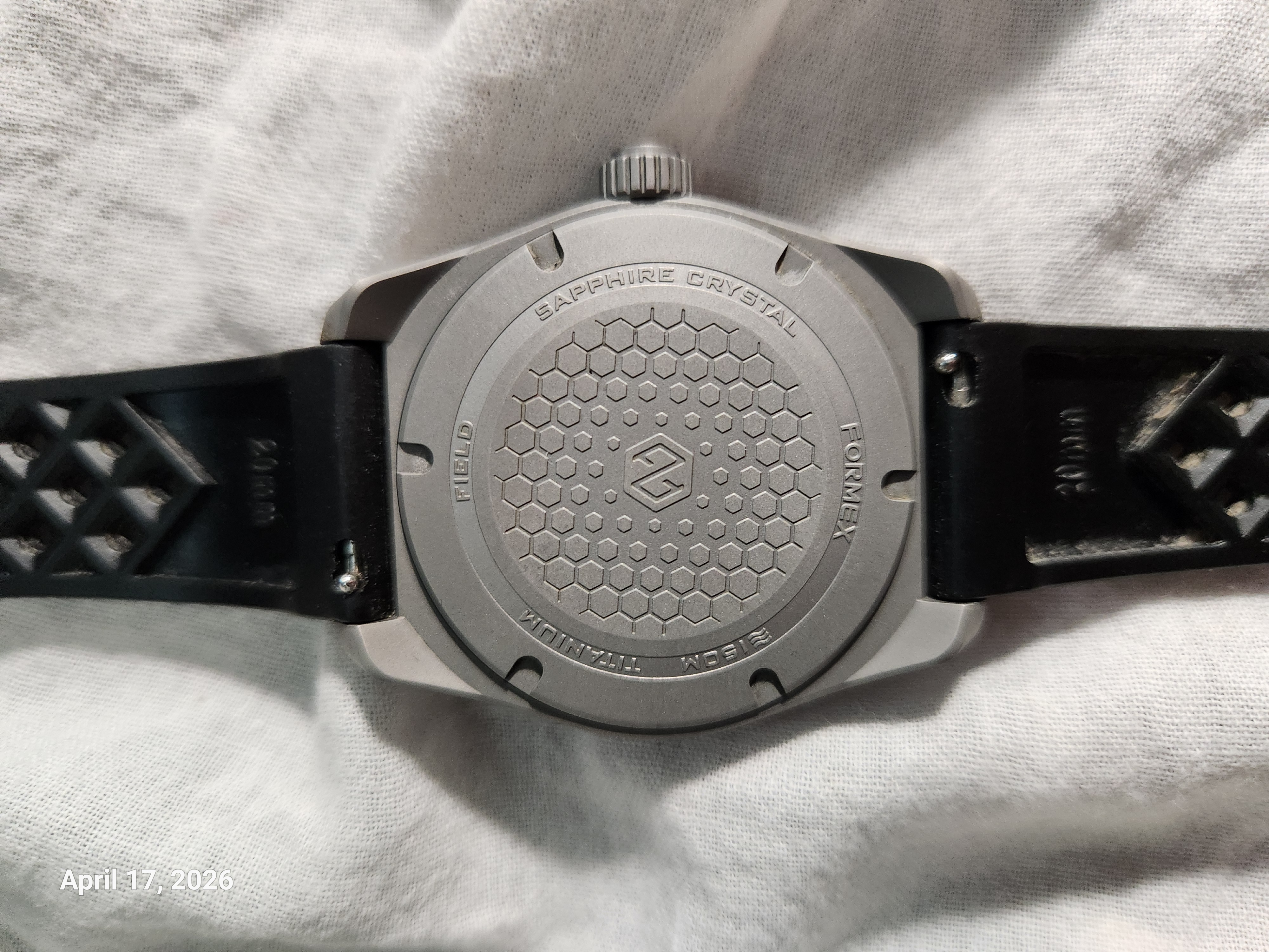 | Unique Watch Features | Hardened Grade 2 titanium case (900 Vickers), recessed sandwich-style dial. |